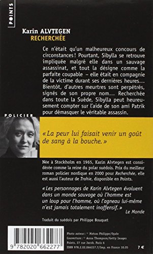 274pages. poche. Poche.Rang parmi les ventes Amazon: #12087 dans LivresPublié le: 2005-10-21Sorti le: 2005-10-21Langue d'origine: FrançaisNombre d'articles: 1Dimensions: 7.13" h x .71" l x 4.25" L, .0 livres Reliure: Poche276 pagesPrésentation de l'éditeurDepuis plusieurs années, Sibylla vit dans l'ombre, fuyant le souvenir de son enfance, en marge de la société dans laquelle elle ne se reconnaît pas. Mais elle est soudain projetée sur le devant de la scène et fait la "une" des journaux: un homme a été sauvagement assassiné, un homme avec qui elle a justement passé la soirée. Tout le pays la recherche... Bientôt de nouveaux meurtres surviennent tous signés d'un prénom: le sien... Traquée, seule, Sibylla n'a pour seul allié qu'un adolescent, Patrik, à qui elle confie les secrets de son passé. Ensemble, ils mènent l'enquête pour retrouver le véritable assassin. Karin Alvtegen brosse ici le portrait tout en finesse d'une femme à la recherche de son identité, au fil d'un thriller psychologique, qui a reçu le prix du meilleur roman policier nordique (Glasnyckeln) et a été publié dans vingt pays.Biographie de l'auteurKarin Alvtegen, née à Stockholm en 1965, est la petite-nièce d'Astrid Lindgren, créatrice de Fifi Brindacier. Il a fait l'objet d'une adaptation cinématographique. Karin Alvtegen est autant reconnue que Hennig Mankell dans les pays scandinaves.